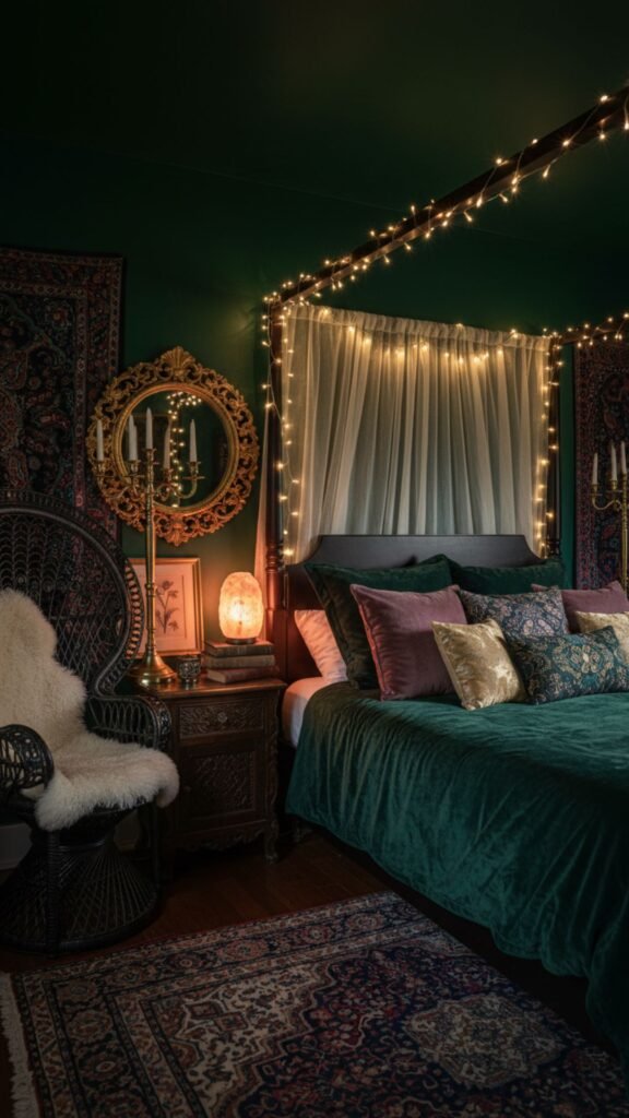 Boho doesn’t always have to be light and airy. This darker, moodier version uses jewel tones and shadows to create a romantic vibe.