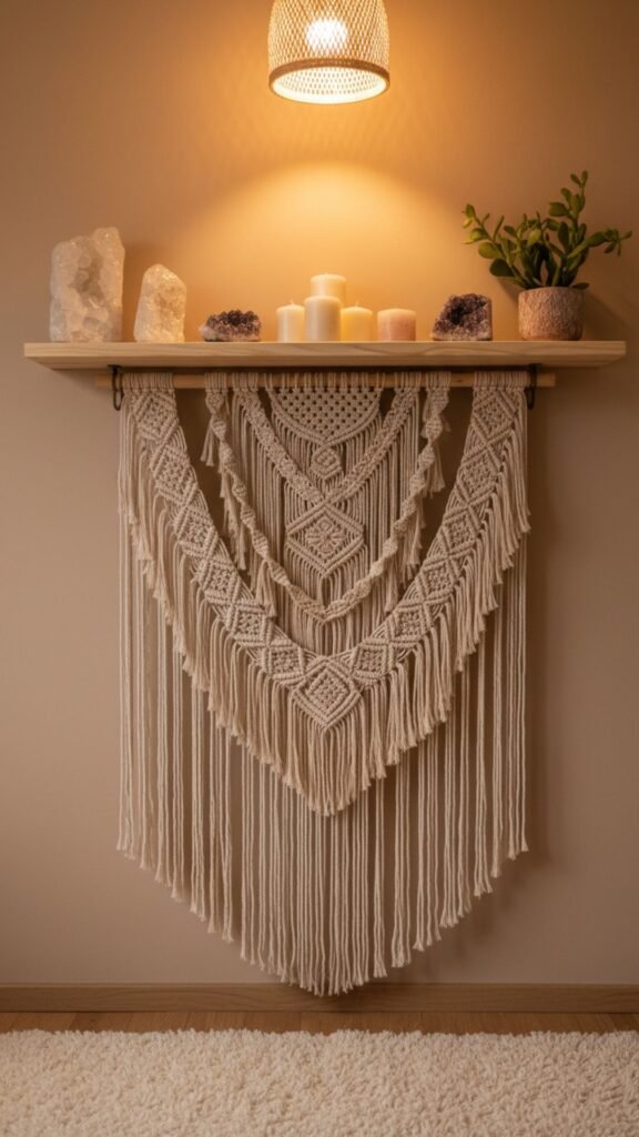 2. Macramé-Draped Shelf