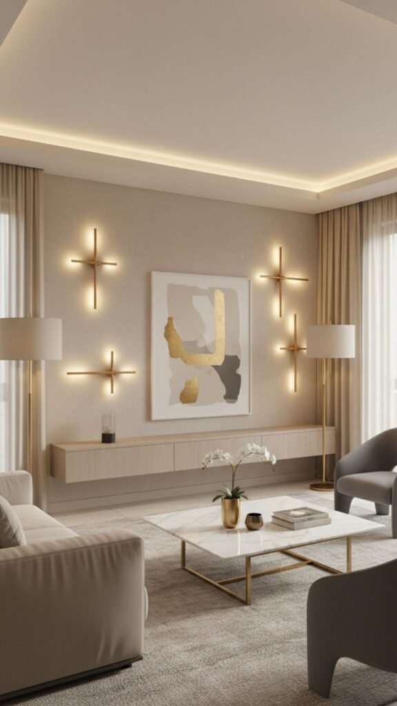 Cove lighting hides the actual light source, directing a soft wash of illumination up toward the ceiling or down a wall. This architectural lighting technique creates an ethereal, glowing effect that feels incredibly luxurious and modern. It adds depth to your living room without cluttering the ceiling.