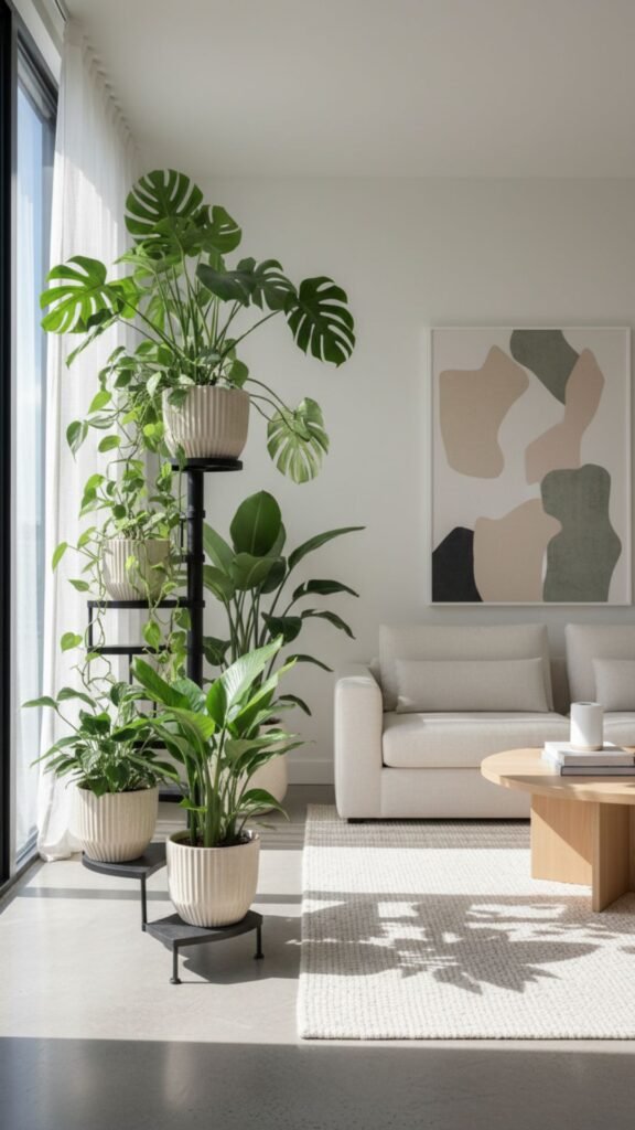 - Use matching planters in matte white, terracotta, or concrete finishes.
