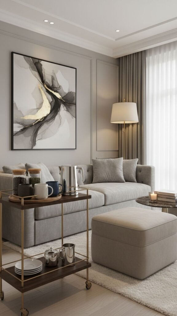 A personal cafe corner makes hosting guests or starting your morning feel like a luxury experience. Setting up a dedicated beverage station keeps your kitchen counters clear while adding a stylish feature to your living area.