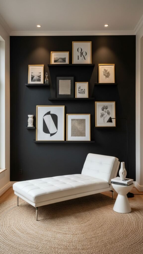 Sometimes a nook is best used for visual inspiration. An art corner draws the eye and sparks conversation without taking up floor space. This is an excellent way to showcase your personality while maintaining a modern, uncluttered aesthetic.