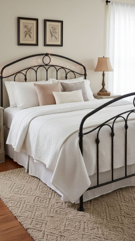 Wrought iron headboards evoke classic romance with their elegant curves and timeless appeal. These sturdy pieces work beautifully in both traditional and eclectic bedrooms.