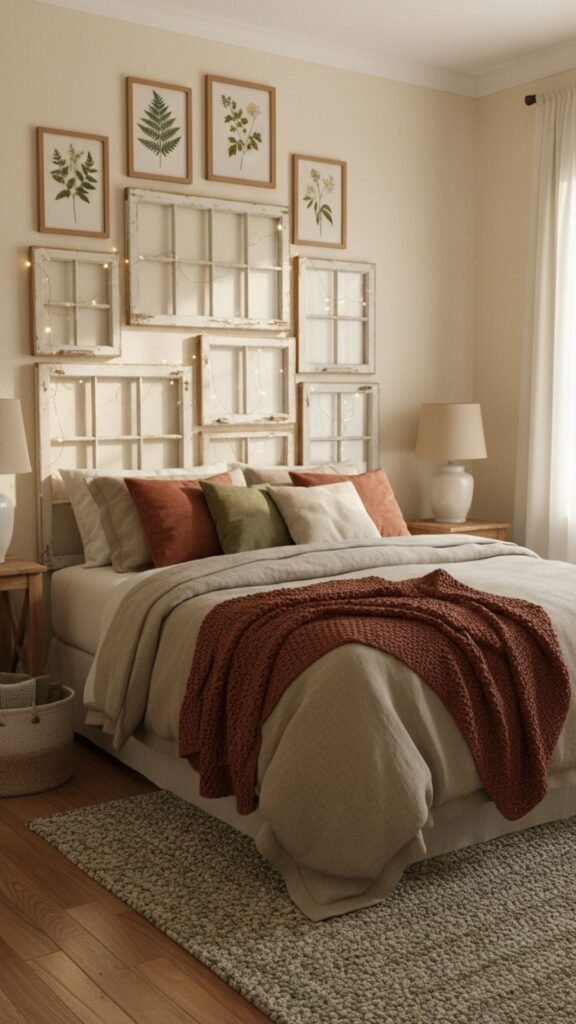 Repurposing vintage window frames as headboards adds architectural interest and a unique, personalized touch. This creative approach is perfect for DIY enthusiasts.