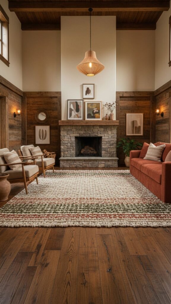- Mix natural materials like jute, thick wool, and heavy cotton.