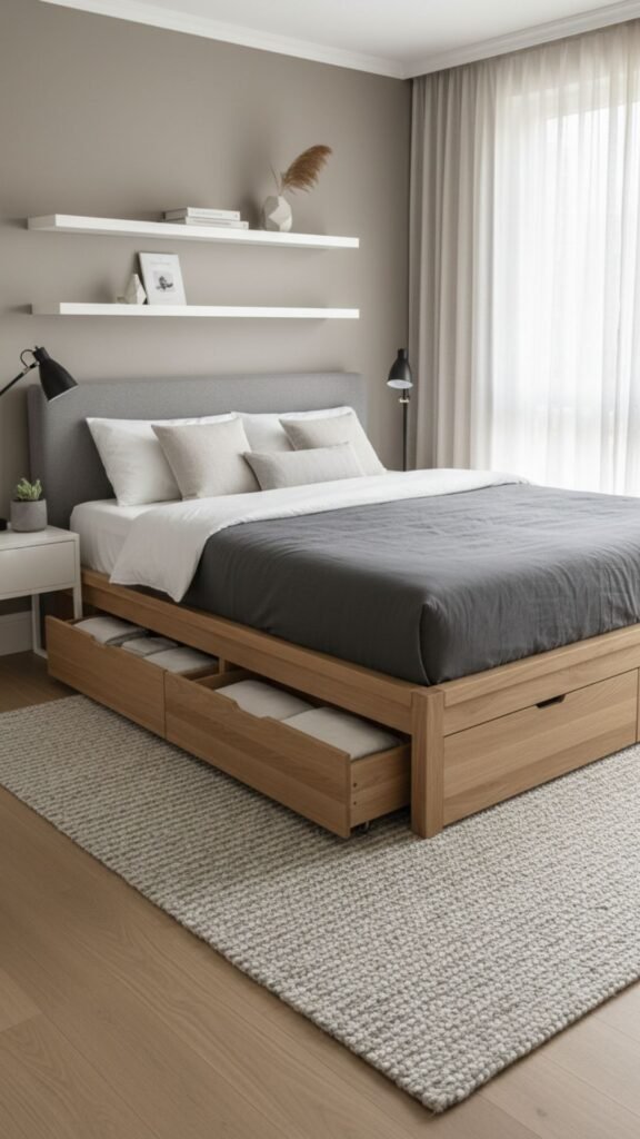 Focus on reducing visual clutter, using light colors, and keeping furniture minimal. Under-bed storage and wall-mounted shelves are great ways to maximize space without making the room feel crowded.