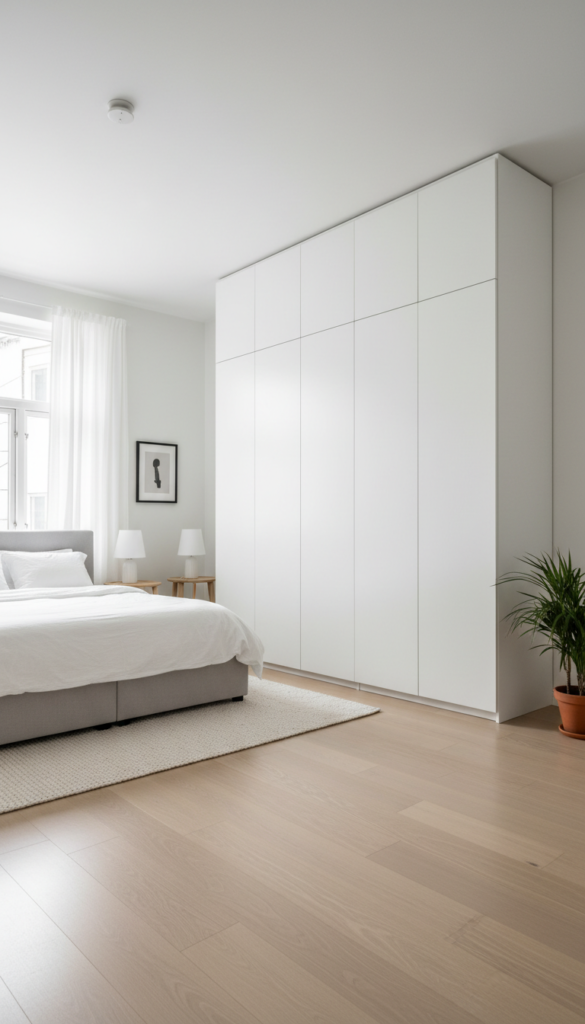 For those who believe less is more, a minimalist built-in wardrobe offers a calm, clutter-free visual. This style blends perfectly into the walls, making the room feel expansive and airy.