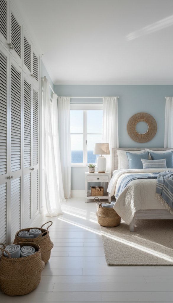 Bring the holiday vibes home with a coastal-inspired wardrobe. This look is all about texture and light, making it ideal for smaller bedrooms that need brightening up.