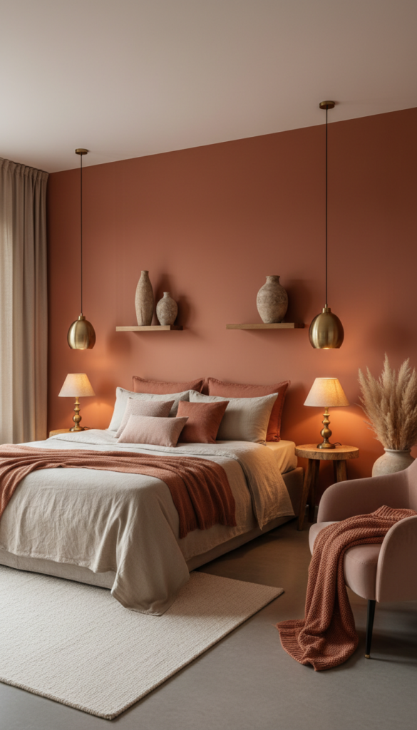- Use terracotta as an accent wall or in bedding for a bold statement.
