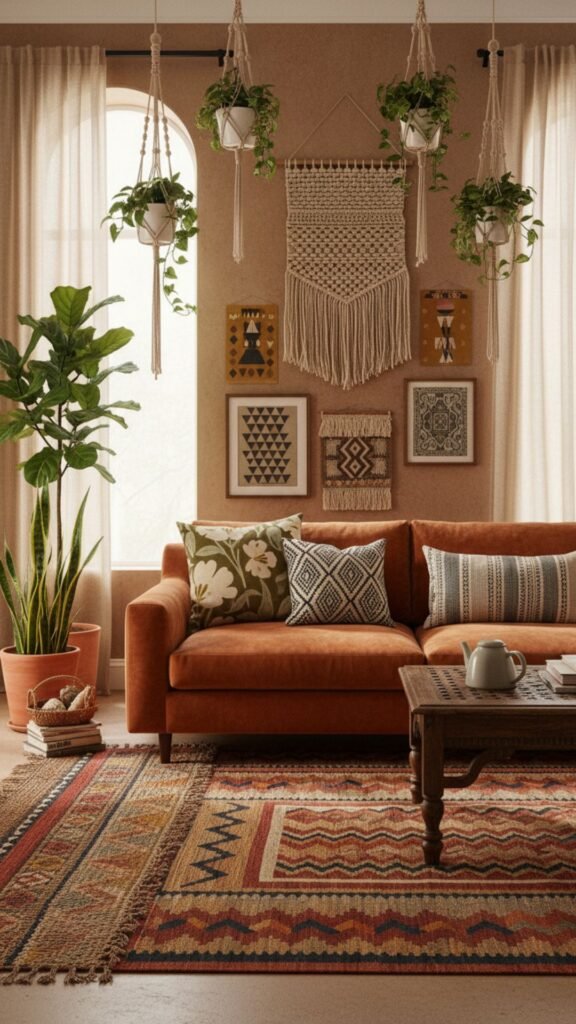 Your living room should feel like a place you actually want to be. Warm textures, layered rugs, trailing plants, and the kind of eclectic charm that makes a space feel truly alive—that’s the boho aesthetic in a nutshell.