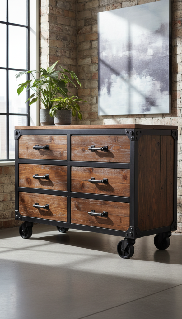 Perfect for urban lofts or anyone who loves an edgy vibe. Industrial dressers mix raw materials like metal and dark wood. They are durable, functional, and offer a masculine touch to the bedroom.