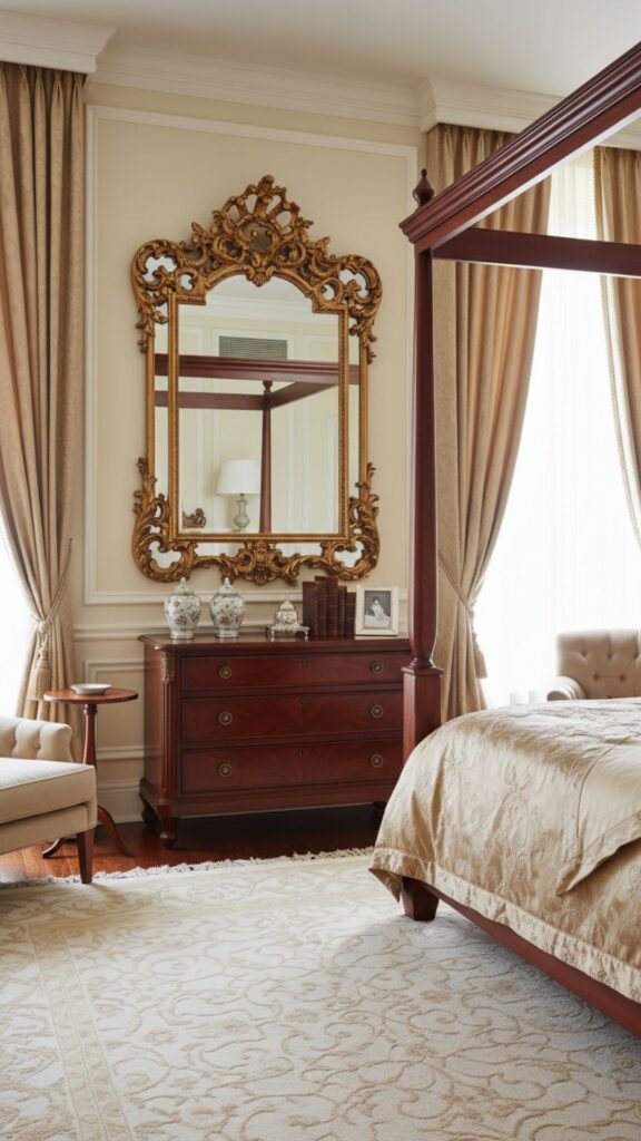 - Hang a large ornate mirror above a dresser or console