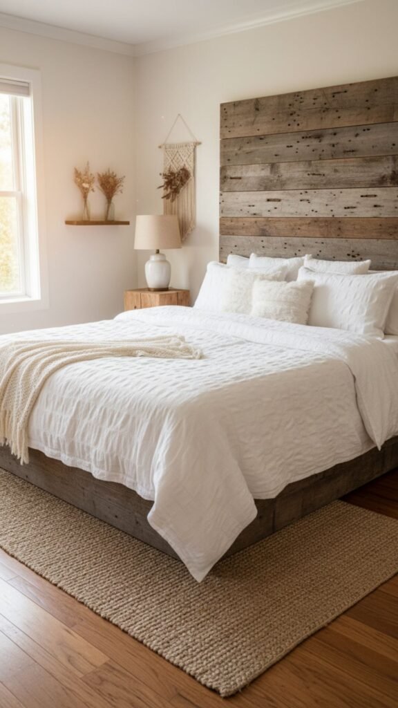 Budget-friendly and eco-conscious, pallet wood headboards offer incredible versatility. The varied plank sizes create organic visual appeal.