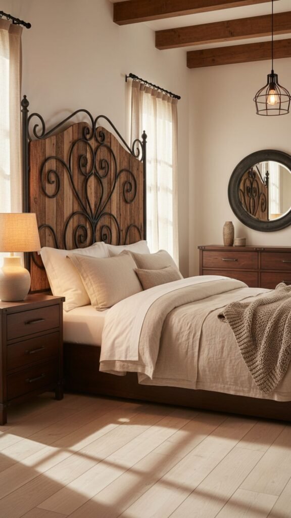 Mixing materials creates depth and interest. Pairing wrought iron with reclaimed wood bridges industrial and farmhouse styles beautifully.