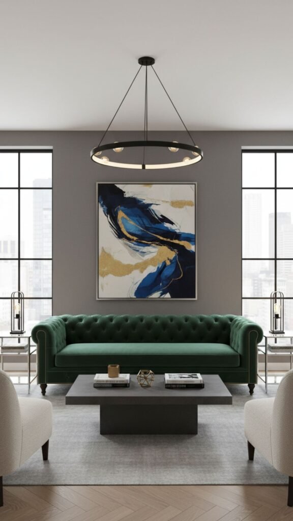 A classic tufted Chesterfield sofa instantly adds sophistication and serves as a bold focal point. Choosing one in a rich jewel tone like emerald green or sapphire blue provides a stunning contrast to more modern or casual surrounding elements.