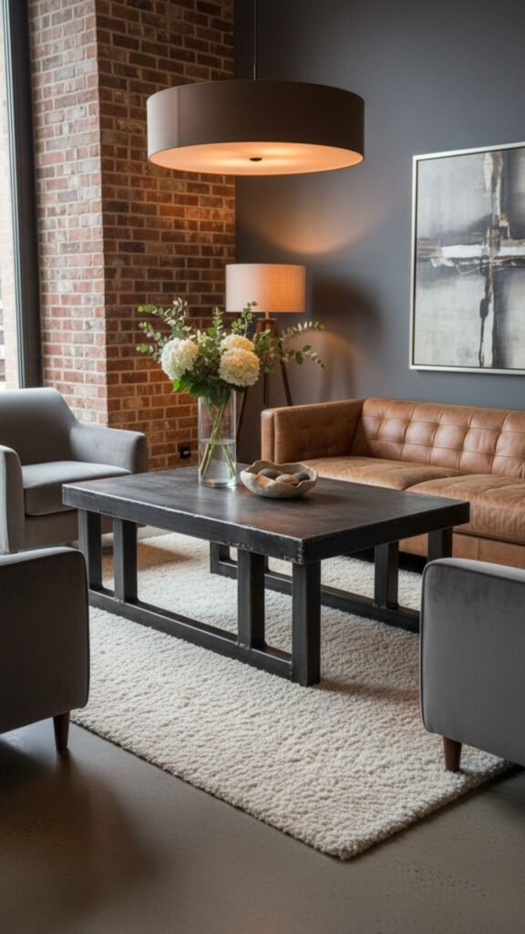 Bringing raw materials like iron, steel, or distressed wood into the mix adds an edgy element to your eclectic living room. An industrial coffee table cuts through overly delicate or glamorous decor.