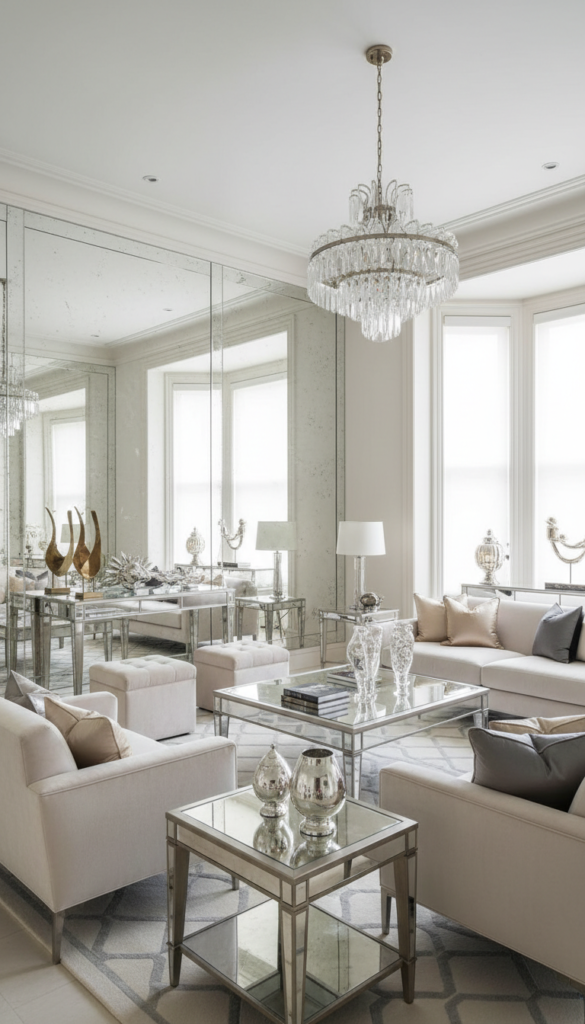 Mirrors are a decorator’s secret weapon for adding glamour and creating the illusion of more space. They reflect light, making the room feel brighter and more open.