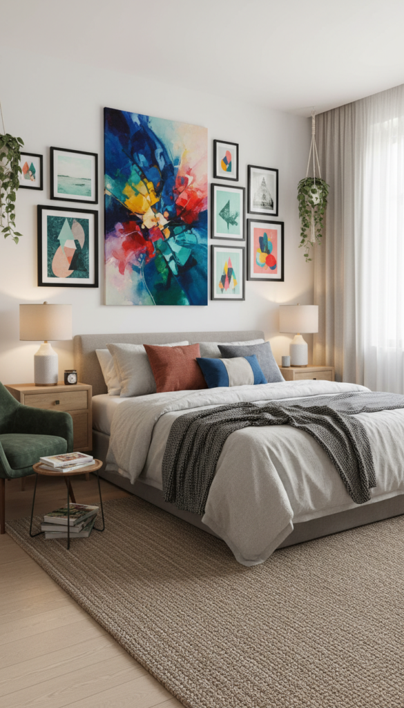 Empty walls can feel stark and uninviting. Curating art for your bedroom adds personality and color, transforming the space into a personal gallery.