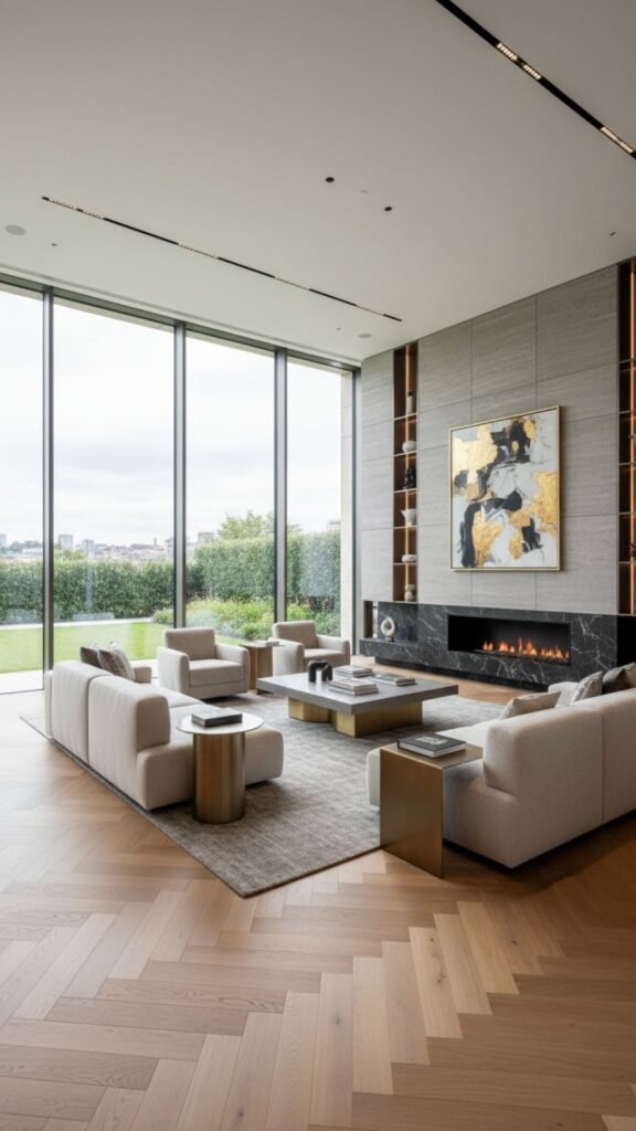 Nothing disrupts the luxury feel of an open-plan space more than disjointed flooring where the old wall used to be. Laying a continuous, high-quality floor throughout the entire knock through unifies the zones perfectly. A herringbone or chevron wood pattern directs the eye outward, making the expansive room feel even larger.