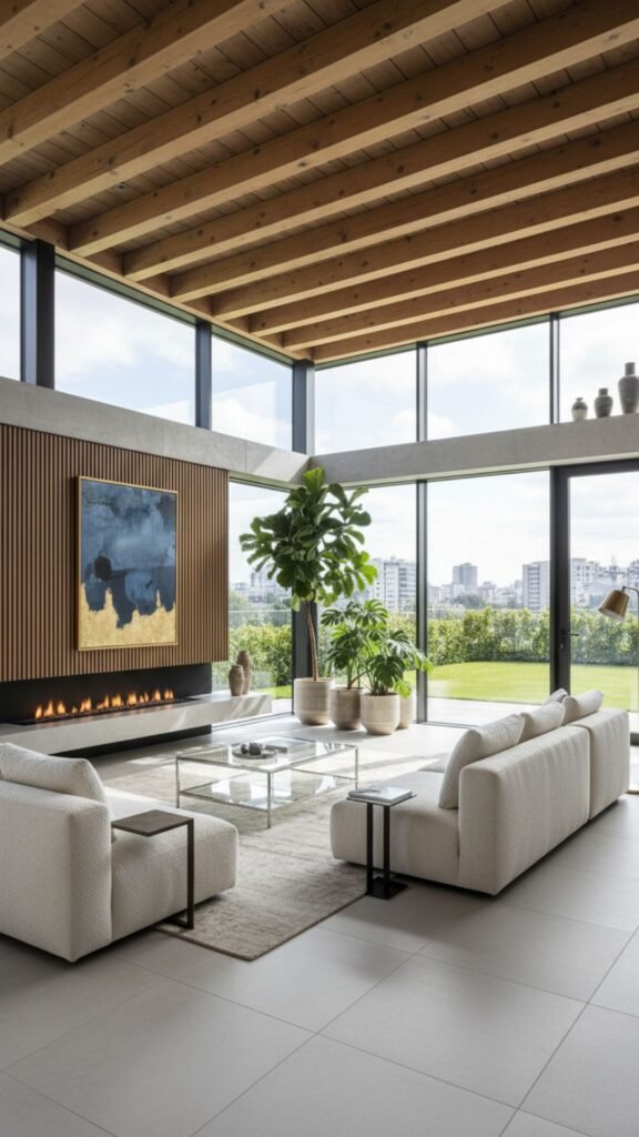 • Match the wood tone of the beams to your flooring or key furniture pieces.