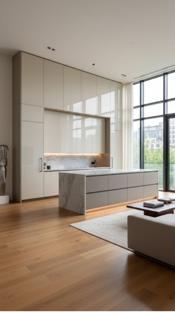 • Use handle-less doors with push-to-open mechanisms for a sleek, modern profile.