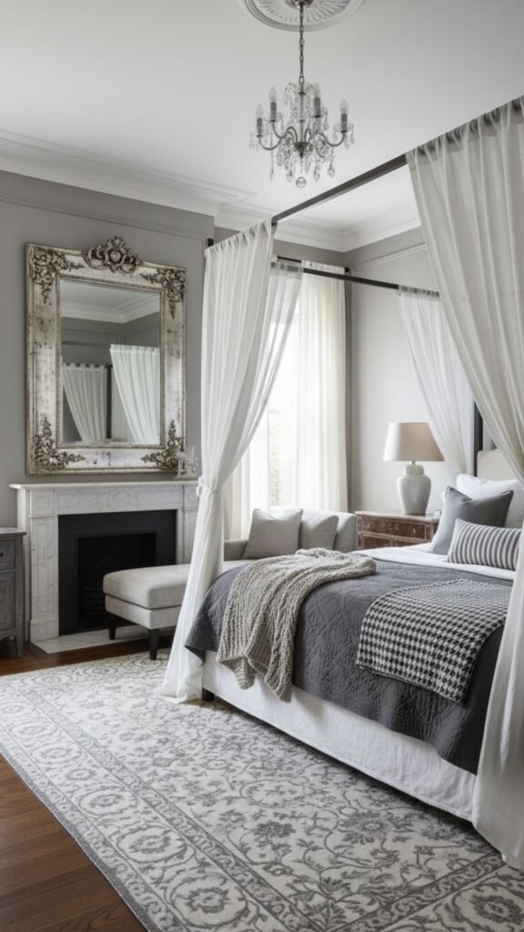 An antique silver frame adds sophistication without overpowering your space. The cool metallic tones work beautifully with both modern and traditional bedroom styles, creating a bridge between contemporary comfort and classic elegance.