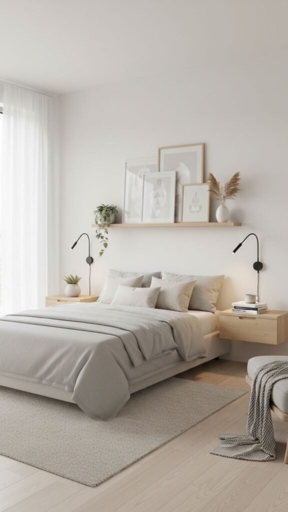 Mounted nightstands free up floor space and create a sleek, modern look. Pair them with floating shelves for books, plants, and bedside essentials.