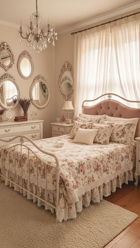 Combine vintage furniture with soft pastels and distressed finishes for a romantic, feminine aesthetic that feels lived-in yet elegant.