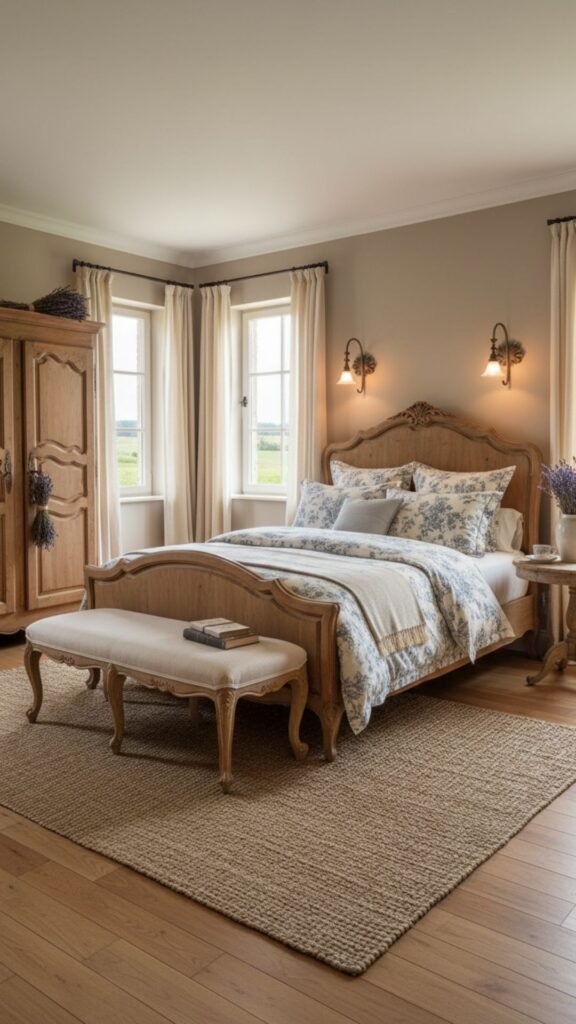 Blend elegance with rustic charm through muted colors, antique furniture, and refined details inspired by French provincial style.