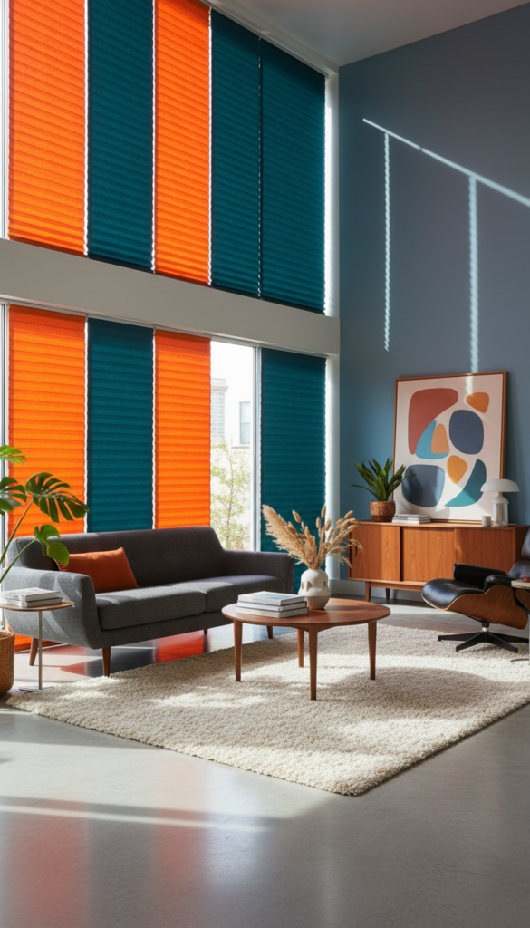 In the 1950s and 60s, sharp lines and geometric forms were king. Pleated shades, often made of paper or stiffened fabric, offer that crisp, accordion look that fits perfectly in a retro-modern bedroom. They fold up tightly, vanishing from sight when you want a full view.