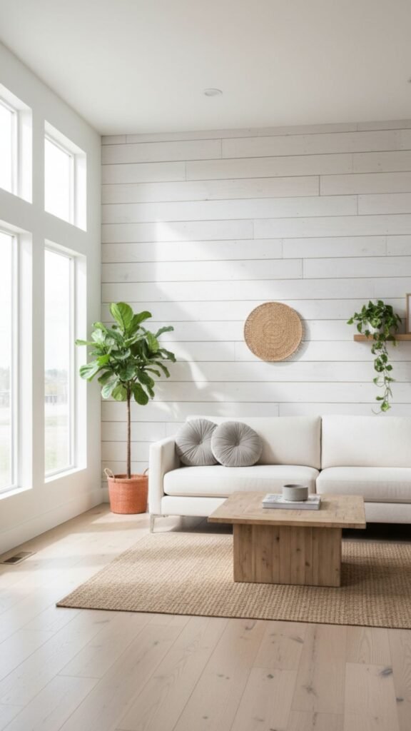 True shiplap can be expensive, but you can recreate the appearance using cheap plywood. A single accent wall draws the eye and establishes a clear focal point in your living space. This weekend project completely changes the atmosphere of the room for a fraction of the cost.